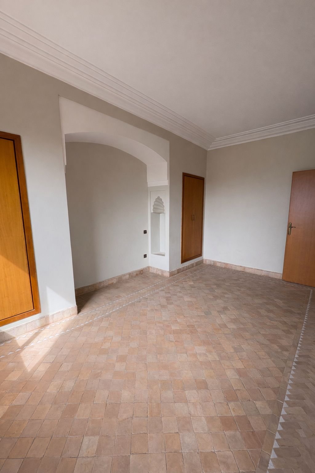 Located in a secure gated residence in Targa, Marrakech, this elegant riad-style villa offers 271 m² of built space, along with a private garden and charming patio. The residence provides 24/7 security, private parking, landscaped gardens, and a communal swimming pool.