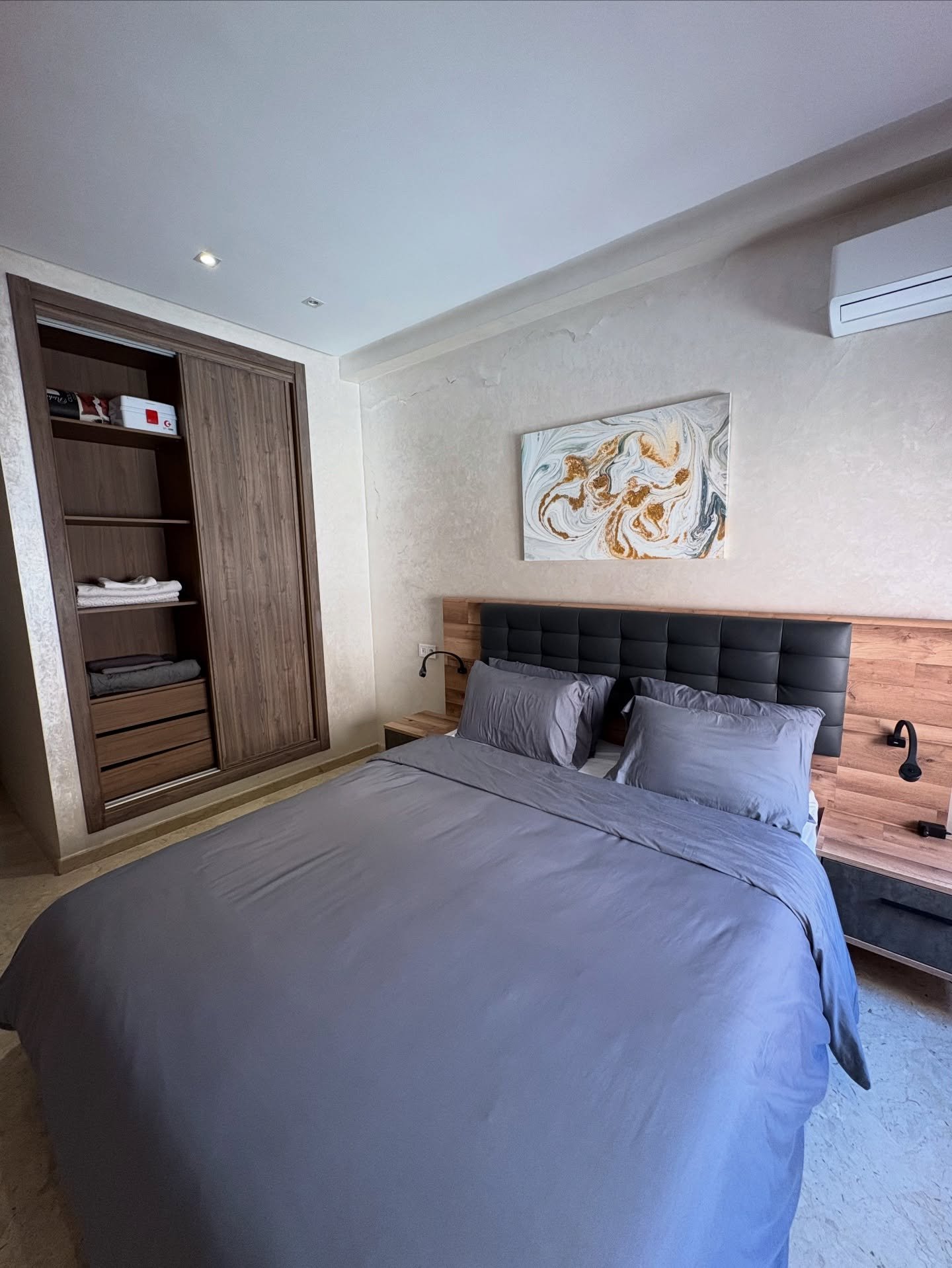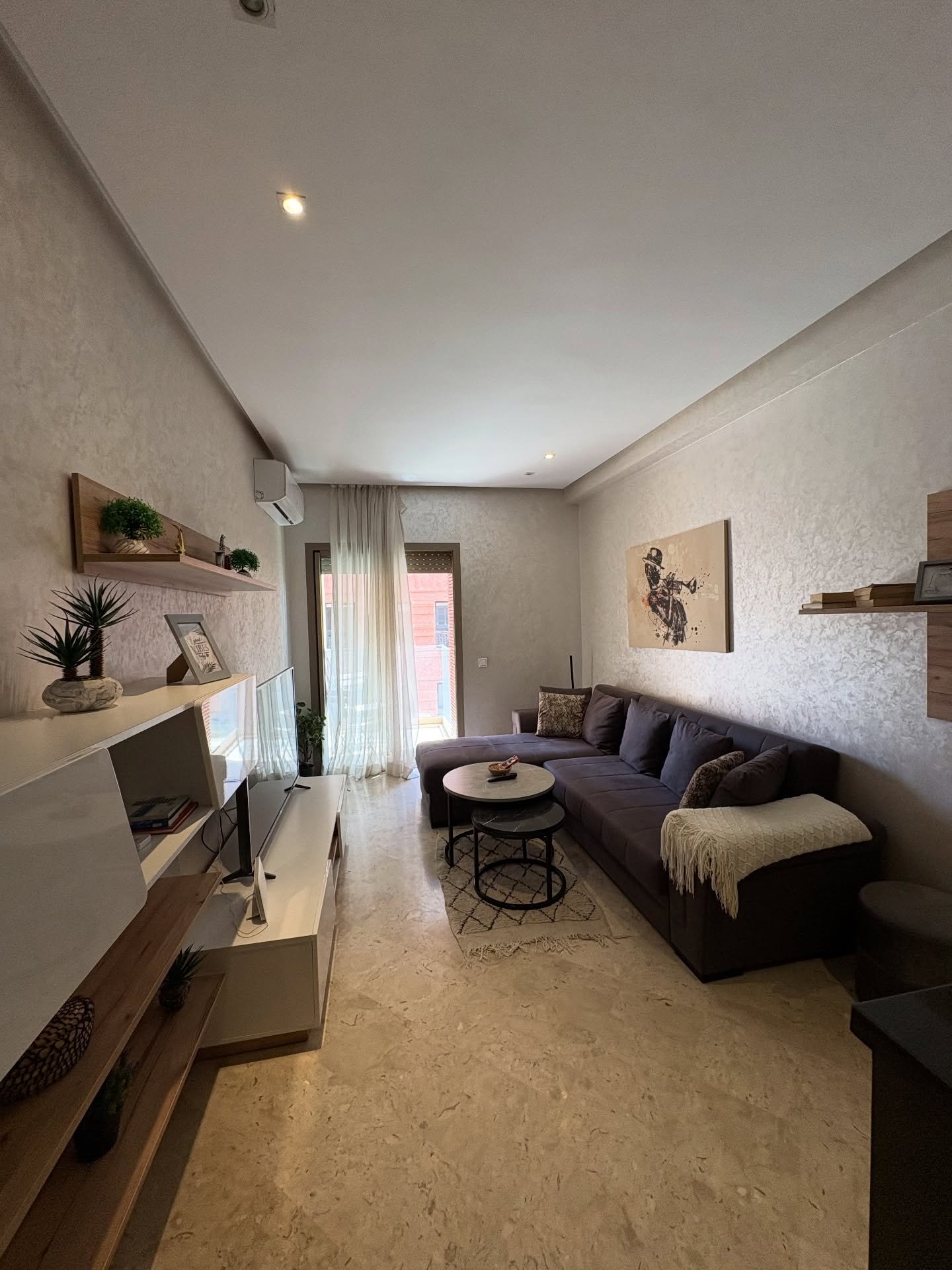 This beautifully furnished 50 m² studio in the heart of Gueliz comes with 11 m² of private, titled parking, a rare find in this vibrant neighborhood. With a panoramic view of Carré Eden, a bright open living area, cozy bedroom, fully equipped kitchen, and air conditioning, it’s perfect as a rental investment or a stylish pied-à-terre.